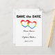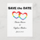 "Rainbow Double Hearts" Save the Date Postcards
