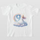 This 'Rainbow Dreams' shirt design is a burst of joy for any child's ninth birthday, featuring a graceful princess perched on a cloud as she reaches towards a vibrant rainbow that forms the number '9'. The pastel hues of her gown merge with the soft colors of the sky, while the playful stars around her twinkle with excitement. The design symbolizes the limitless imagination and colorful adventures that the ninth year can bring. It's a piece of wearable art that offers a glimpse into a world where dreams are as real as the rainbow, making it a perfect gift for a nine-year-old ready to soar into another year of wonder.