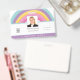 A company photo ID badge with the colors of the rainbow running along the top edge and your company name along the bottom. Swap in your photo (of square orientation), and company logo, and easily personalise the text to your own details. You can also add your return address on the back in case your card gets lost or delete this text if you so wish. The font styles and color can also be changed via the Customise Further option.