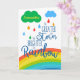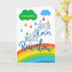 A beautiful support message of encouragement on a fabulous rainbow card. The purple quote states "The greater the storm, the brighter the rainbow". Works well with a cancer support sunshine box card, a social distancing hello, or just as a thinking of you card.