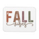 This cozy and inviting fall design features the phrase "Fall Vibes" in a combination of bold and elegant typography. The word "FALL" is displayed in large, blocky letters with a distressed texture, giving it a rustic, vintage feel. Each letter is filled with a warm, earthy color—shades of muted orange, brown, purple, and green—that perfectly capture the essence of autumn. Below the word "FALL," the word "vibes" is written in a delicate, flowing script, adding a touch of elegance and charm to the design. The contrast between the bold block letters and the soft script creates a balanced and visually appealing composition, making this design perfect for fall.