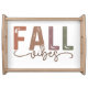 This cozy and inviting fall design features the phrase "Fall Vibes" in a combination of bold and elegant typography. The word "FALL" is displayed in large, blocky letters with a distressed texture, giving it a rustic, vintage feel. Each letter is filled with a warm, earthy color—shades of muted orange, brown, purple, and green—that perfectly capture the essence of autumn. Below the word "FALL," the word "vibes" is written in a delicate, flowing script, adding a touch of elegance and charm to the design. The contrast between the bold block letters and the soft script creates a balanced and visually appealing composition, making this design perfect for fall.
