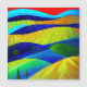 An abstract landscape of rolling hills in bright vibrant colors with angular lines.