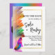 Rainbow Feather Wedding Save the Date Invitation