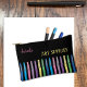 A black pouch featuring some colorful felt pens to store your pens , pencils and small ruler . great for kids , teens or any grownups . Personalize it with a name .