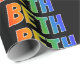 This vibrant, multicolored, exciting wrapping paper design features the common first name "BETH" having a colorful rainbow spectrum inspired coloring pattern. The background is colored black. Colorful wrapping paper like this might be fun to use when giving a gift or present to somebody named Beth. [~Z0000354]