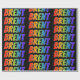 This fun, multicolored, vibrant wrapping paper design features the common first name "BRENT" having a colorful rainbow spectrum like coloring pattern. It also features a black colored background. Exciting wrapping paper like this might be fun to use when giving a present or gift to somebody named Brent. [~Z0000354]