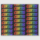 This exciting, fun, vibrant wrapping paper design features the common first name "CURTIS" having a colorful rainbow spectrum inspired coloring pattern. The background is colored black. Exciting wrapping paper like this might be fun to use when giving a present or gift to somebody named Curtis. [~Z0000354]