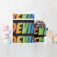 This exciting, fun, multicolored wrapping paper design features the common first name "DEVIN" having a colorful rainbow spectrum like coloring pattern. It also features a black colored background. Exciting wrapping paper like this might be a fun way to wrap a gift being given to somebody named Devin. [~Z0000354]