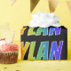 This vibrant, exciting, fun wrapping paper design features the common first name "DYLAN" having a colorful rainbow spectrum inspired coloring pattern. It also features a black colored background. Colorful wrapping paper like this might be fun to use when giving a present to somebody named Dylan. [~Z0000354]
