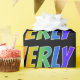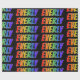 This vibrant, multicolored, fun wrapping paper design features the common first name "EVERLY" having a colorful rainbow spectrum gradient like coloring pattern. It also features a black colored background. Exciting wrapping paper like this might be a fun way to wrap a gift or present being given to somebody named Everly. [~Z0000354]