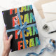 This vibrant, multicolored, exciting wrapping paper design features the common first name "FRANK" having a colorful rainbow spectrum like coloring pattern. The background is colored black. Vibrant wrapping paper like this might be fun to use when giving a gift to somebody named Frank. [~Z0000354]
