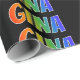 This multicolored, vibrant, fun wrapping paper design features the common first name "GINA" having a colorful rainbow spectrum like coloring pattern. It also features a black colored background. Vibrant wrapping paper like this might be a fun way to wrap a present or gift being given to somebody named Gina. [~Z0000354]