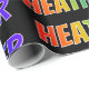 This multicolored, fun, vibrant wrapping paper design features the common first name "HEATHER" having a colorful rainbow spectrum inspired coloring pattern. The background is colored black. Colorful wrapping paper like this might be fun to use when giving a gift to somebody named Heather. [~Z0000354]