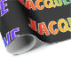 This vibrant, multicolored, fun wrapping paper design features the common first name "JACQUELINE" having a colorful rainbow spectrum inspired coloring pattern. It also features a black colored background. Exciting wrapping paper like this might be fun to use when giving a gift to somebody named Jacqueline. [~Z0000354]