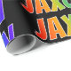 This multicolored, fun, vibrant wrapping paper design features the common first name "JAXON" having a colorful rainbow spectrum like coloring pattern. It also features a black colored background. Vibrant wrapping paper like this might be a fun way to wrap a gift or present being given to somebody named Jaxon. [~Z0000354]