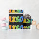 This fun, vibrant, multicolored wrapping paper design features the common first name "JAXSON" having a colorful rainbow spectrum like coloring pattern. It also features a black colored background. Vibrant wrapping paper like this might be a fun way to wrap a gift or present being given to somebody named Jaxson. [~Z0000354]