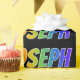 This fun, exciting, multicolored wrapping paper design features the common first name "JOSEPH" having a colorful rainbow spectrum inspired coloring pattern. The background is colored black. Colorful wrapping paper like this might be fun to use when giving a present or gift to somebody named Joseph. [~Z0000354]