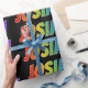 This exciting, fun, multicolored wrapping paper design features the common first name "JOSIAH" having a colorful rainbow spectrum like coloring pattern. It also features a black colored background. Vibrant wrapping paper like this might be fun to use when giving a gift to somebody named Josiah. [~Z0000354]