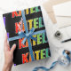 This multicolored, vibrant, fun wrapping paper design features the common first name "KATELYN" having a colorful rainbow spectrum gradient inspired coloring pattern. It also features a black colored background. Exciting wrapping paper like this might be a fun way to wrap a present or gift being given to somebody named Katelyn. [~Z0000354]