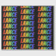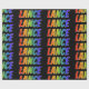 This vibrant, exciting, fun wrapping paper design features the common first name "LANCE" having a colorful rainbow spectrum inspired coloring pattern. It also features a black colored background. Exciting wrapping paper like this might be a fun way to wrap a gift being given to somebody named Lance. [~Z0000354]