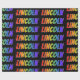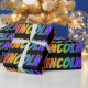This fun, multicolored, exciting wrapping paper design features the common first name "LINCOLN" having a colorful rainbow spectrum gradient like coloring pattern. The background is colored black. Exciting wrapping paper like this might be a fun way to wrap a present or gift being given to somebody named Lincoln. [~Z0000354]