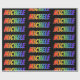 This vibrant, fun, exciting wrapping paper design features the common first name "MICHELE" having a colorful rainbow spectrum gradient inspired coloring pattern. The background is colored black. Vibrant wrapping paper like this might be fun to use when giving a gift to somebody named Michele. [~Z0000354]