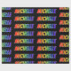 This vibrant, fun, multicolored wrapping paper design features the common first name "MICHELLE" having a colorful rainbow spectrum inspired coloring pattern. The background is colored black. Colorful wrapping paper like this might be a fun way to wrap a present being given to somebody named Michelle. [~Z0000354]