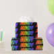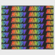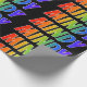 This vibrant, multicolored, exciting wrapping paper design features the common first name "MINDY" having a colorful rainbow spectrum like coloring pattern. The background is colored black. Exciting wrapping paper like this might be a fun way to wrap a gift being given to somebody named Mindy. [~Z0000354]