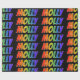 This multicolored, vibrant, fun wrapping paper design features the common first name "MOLLY" having a colorful rainbow spectrum gradient inspired coloring pattern. The background is colored black. Colorful wrapping paper like this might be fun to use when giving a present to somebody named Molly. [~Z0000354]