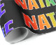 This multicolored, fun, vibrant wrapping paper design features the common first name "NATALIE" having a colorful rainbow spectrum like coloring pattern. It also features a black colored background. Exciting wrapping paper like this might be fun to use when giving a gift to somebody named Natalie. [~Z0000354]