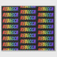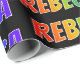 This vibrant, exciting, multicolored wrapping paper design features the common first name "REBECCA" having a colorful rainbow spectrum like coloring pattern. It also features a black colored background. Colorful wrapping paper like this might be a fun way to wrap a gift being given to somebody named Rebecca. [~Z0000354]