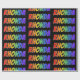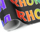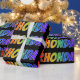 This fun, exciting, vibrant wrapping paper design features the common first name "RHONDA" having a colorful rainbow spectrum gradient like coloring pattern. The background is colored black. Colorful wrapping paper like this might be fun to use when giving a present to somebody named Rhonda. [~Z0000354]