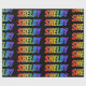 This fun, vibrant, exciting wrapping paper design features the common first name "SHELBY" having a colorful rainbow spectrum inspired coloring pattern. The background is colored black. Colorful wrapping paper like this might be fun to use when giving a gift to somebody named Shelby. [~Z0000354]