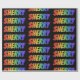 This multicolored, vibrant, exciting wrapping paper design features the common first name "SHERRY" having a colorful rainbow spectrum gradient inspired coloring pattern. The background is colored black. Exciting wrapping paper like this might be a fun way to wrap a present being given to somebody named Sherry. [~Z0000354]