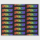 This vibrant, exciting, multicolored wrapping paper design features the common first name "SPENCER" having a colorful rainbow spectrum inspired coloring pattern. It also features a black colored background. Colorful wrapping paper like this might be a fun way to wrap a gift being given to somebody named Spencer. [~Z0000354]
