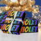This multicolored, fun, exciting wrapping paper design features the common first name "VIOLET" having a colorful rainbow spectrum like coloring pattern. It also features a black colored background. Exciting wrapping paper like this might be fun to use when giving a gift to somebody named Violet. [~Z0000354]