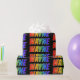 This vibrant, fun, multicolored wrapping paper design features the common first name "WAYNE" having a colorful rainbow spectrum like coloring pattern. The background is colored black. Exciting wrapping paper like this might be a fun way to wrap a gift or present being given to somebody named Wayne. [~Z0000354]