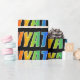 This vibrant, fun, multicolored wrapping paper design features the common first name "WYATT" having a colorful rainbow spectrum gradient inspired coloring pattern. The background is colored black. Exciting wrapping paper like this might be a fun way to wrap a present being given to somebody named Wyatt. [~Z0000354]