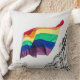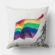 This is a great picture of the rainbow pride flag flying with a black and white picture of buildings in the background. Beautiful and strong symbol of pride.