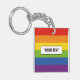Gay pride keychain featuring a rainbow flag with editable text in a bold design.