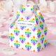 Rainbow fleur-de-lis motif. Exclusive pattern. Custom party favor boxes. Edit name to customize. Great for personalized party decor.