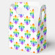 Rainbow fleur-de-lis motif. Exclusive pattern. Custom party favor boxes. Great for personalized party decor.