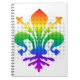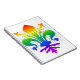 A rainbow fleur-de-lis with a fleur-de-lis background pattern.