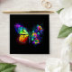 Rainbow, luminous, artistically painted monarch butterfly with bouquet of iridescent, bright, luminescent roses on black background. Rainbow butterfly.