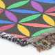 A quality printed throw has its advantages. This is a much finer weave throw than its loopier cousins, and though lighter, it is worth the investment for custom room accessorizing. The back is much prettier than the typical brown, and the fringe on the long sides very vivid, the selvage nicely done. Before photographing, I washed the throw in cold water, delicate, with a thicker woven throw the same size. On tumble dry low, this throw was dry in half the time as the other. This is a very practical quality if you use throws for furniture covers or to wrap up in frequently. The sleekness of the fabric makes it a great layer for accenting or protecting without the feeling of sitting on too much stuff. Perfect for napping or when you feel a light chill coming on. The color printing is beautiful and on this fabric, matched the design and color of my Photoshop image. This is an advantage for blending room fabrics and colors. The fringe on the short sides prints the colors from the design image and therefore varies from the side fringe. I streaked a white fractal line through the plaid pattern to give the illusion of weaving. This printed as crisp as an illusory thread, and put some white in the short side fringe, showing another advantage of print vs loomed- for artistic purposes, line lines, detail, and color integrity can be planned and preserved. My loomed throws have color limitations and more of a needlepoint texture. Print throws reproduce an exact image. The throw felt a little stiff straight out of the package, but this went away in the first delicate wash. Of course I searched the wash water for ink or bleeding and there was none.