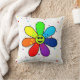 A happy rainbow spotted flower on a multicoloured polka dot background.