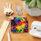 The key chain is made of metal and really sturdy. The flower design is really cheerful. The logo and colors are clear and crisp!
