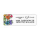 Lgbt wedding return address labels in white with pretty pride colored flowers. Gay wedding return address labels in white with rainbow colored flowers. Floral lesbian wedding return address labels with flowers in all the colors of the rainbow.