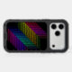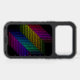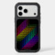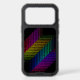 Diagonal stripes of fine lines ripple across a black case, shifting through red, pink, purple, blue, green, and yellow. The layered gradient creates a dynamic rainbow effect, blending geometric precision with bold, modern energy.